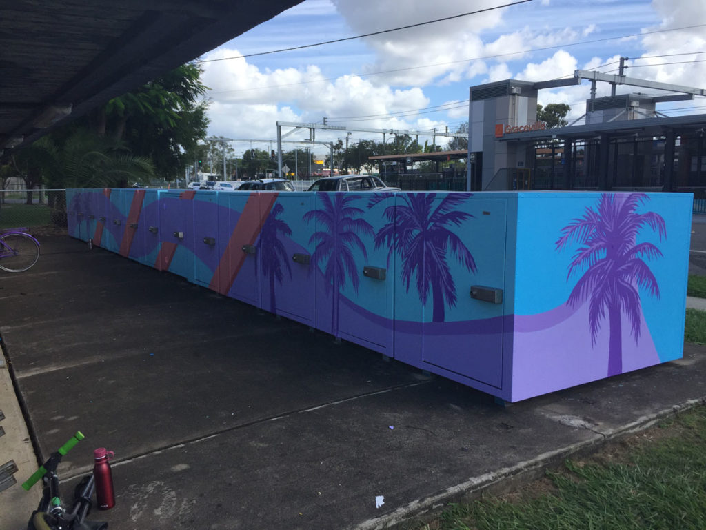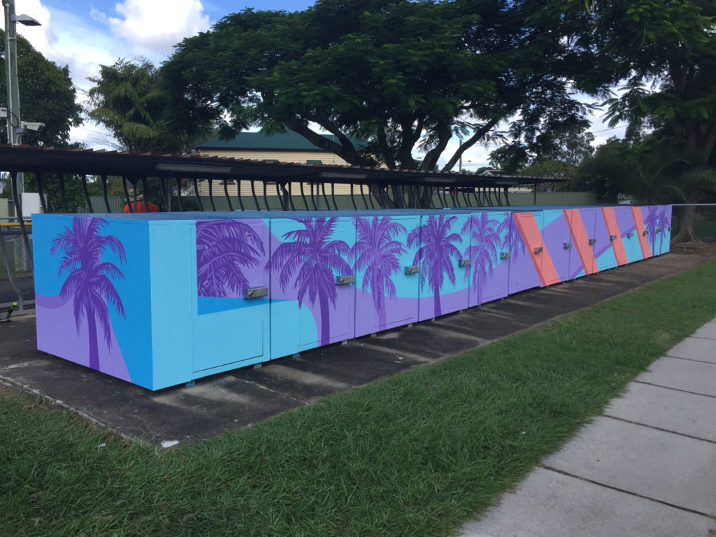 this mural for the adjacent bike lockers. The effervescent pastel colours and iconic palm tree