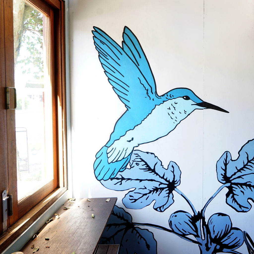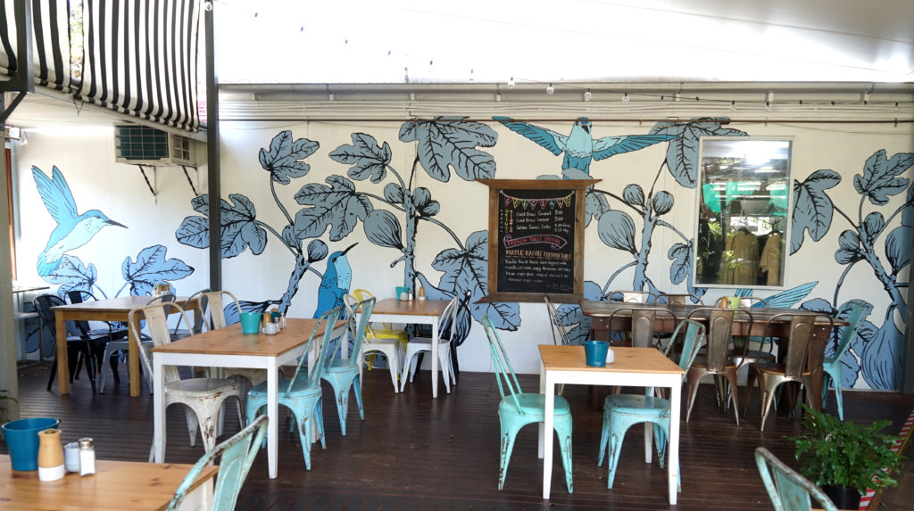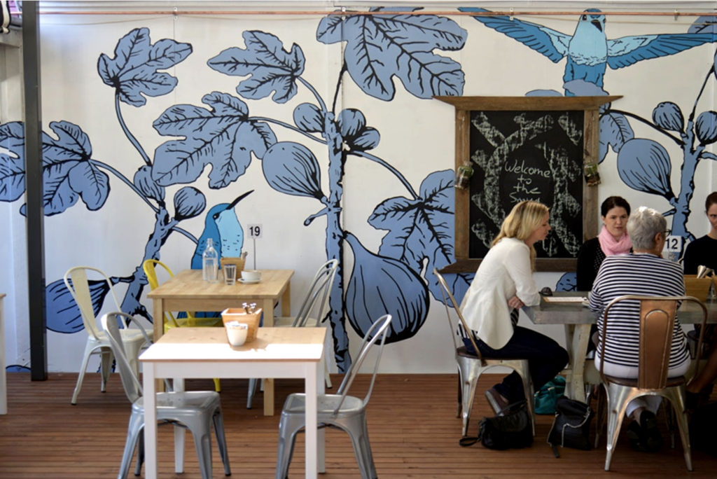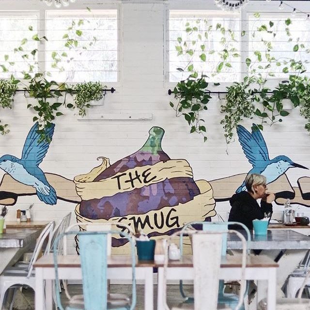 This simple and elegant mural adorns the walls of the Smug Fig café in East Brisbane. The